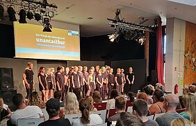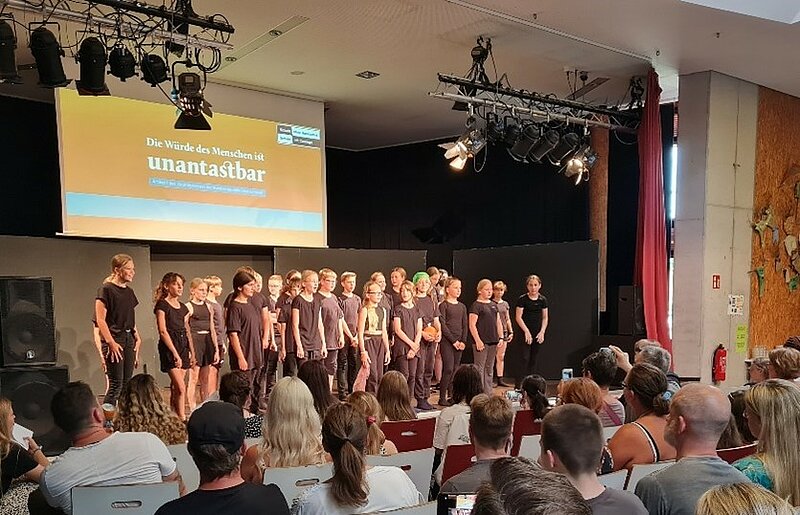 Die letzte Schulwoche vor den Sommerferien widmen wir immer dem Projekt „Schule ohne Rassismus“. 2022 gab es hierzu ein neues Konzept. Von der Schülervertretung inspiriert, gab es ein reichliches Angebot an Projekten, aus denen die SchülerInnen wählen durften. In Gruppen von ca. 20 bis 30 SchülerInnen wurde dann an Projekten rund um das Thema auf vielfältige Weise gearbeitet: Mithilfe von Musik, Theater, Sport oder Kunst, aber natürlich auch durch theoretischen Input.